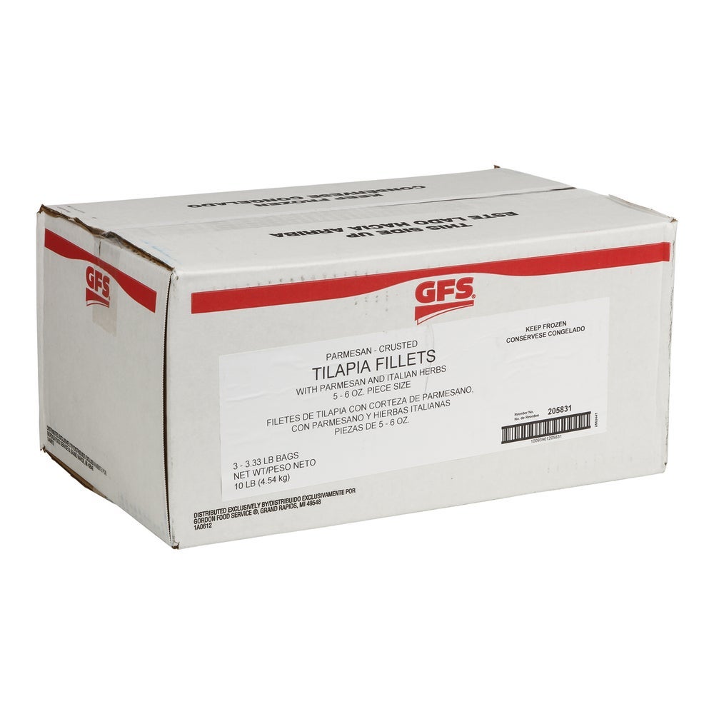 Gordon Choice Parmesan Breaded Tilapia Fillets, Farm-Raised, 5-6 Ounce , Raw, IQF , 3.33 Lb Bag, 3/Case
