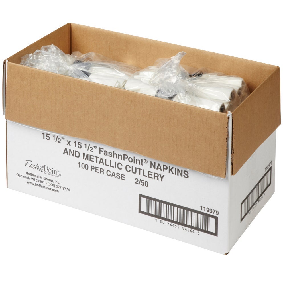 Hoffmaster Plastic Fork/Knife/Spoon Cutlery Kits, Metallic, with Napkin, 50 Ct Package, 2/Case