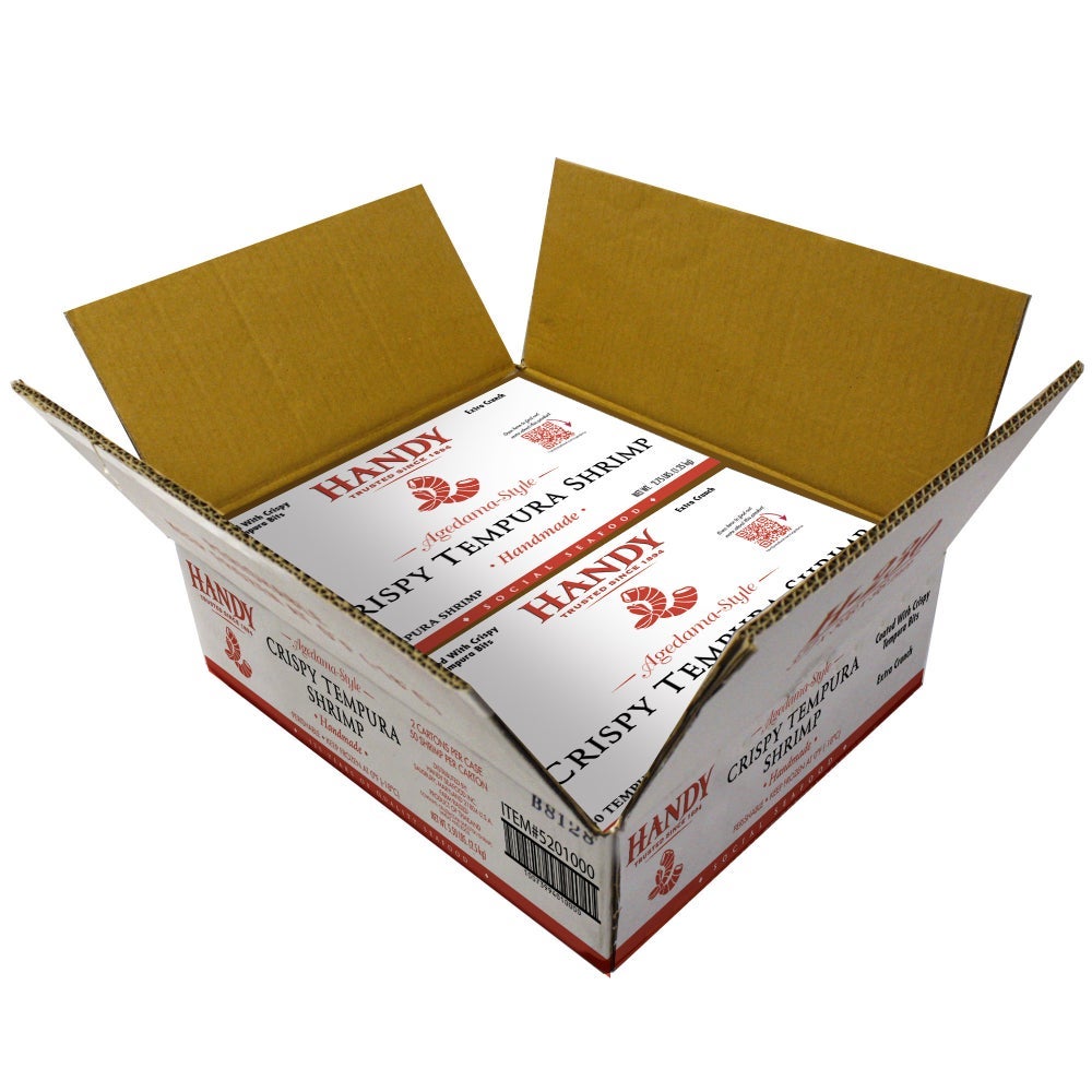 Handy Agedama Tempura Battered Vannamei Shrimp, Peeled & Deveined Tail-On, 16-19 Count per Pound, Raw, Frozen, 2.75 Lb Box, 2/Case