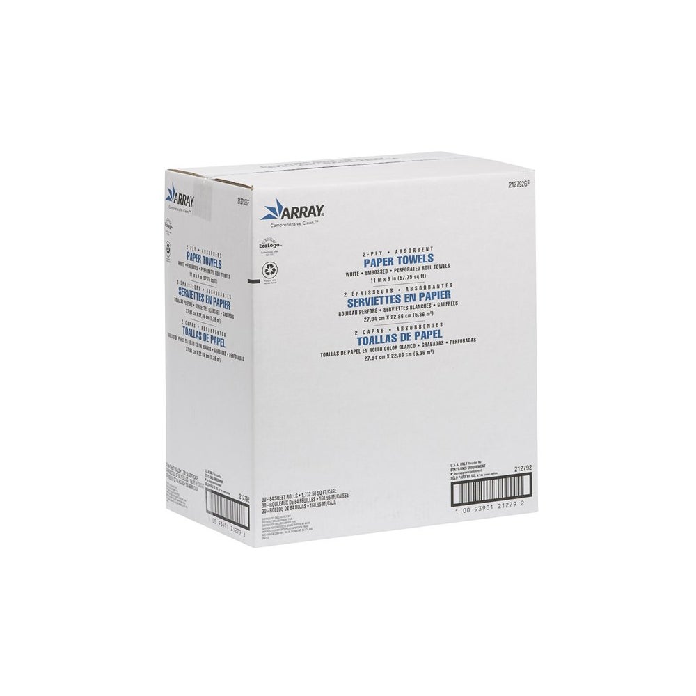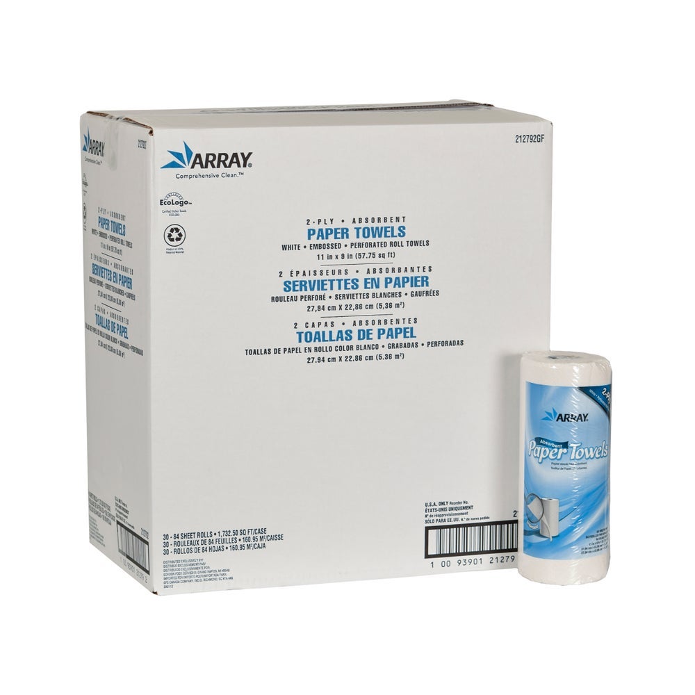 Array 2-Ply Perforated Roll Towels, White, 9 x 11 Inch, 100% Recycled Fibers, 84 Ct Roll, 30/Case