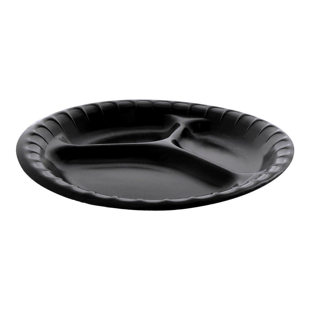 Pactiv 9 Inch Laminated Foam 3-Compartment Plates, Black, Polystyrene, 125 Ct Package, 4/Case