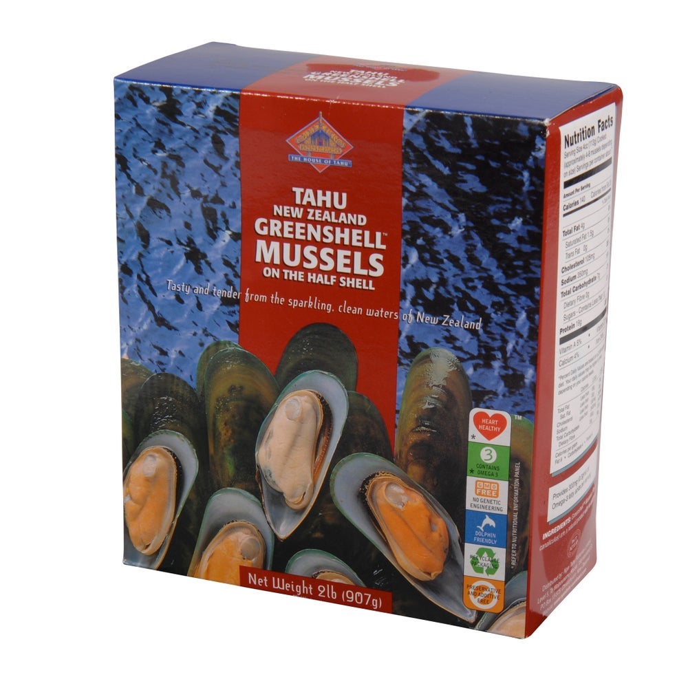 Green mussels on the half shell are tender and plump with a sweet flavor. Ideal for appetizers, main entrees, soups, and stews. Brand may vary.