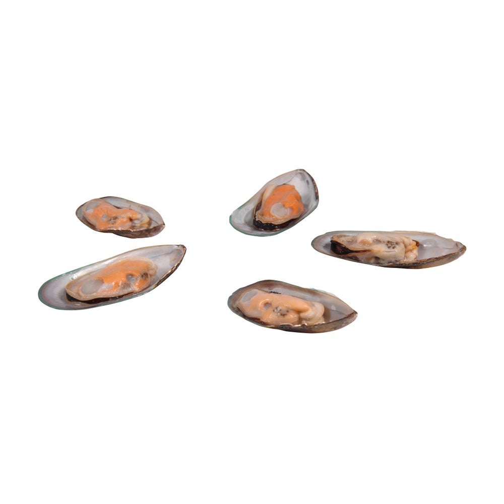 Packer Label New Zealand Green Mussels on the Half Shell, 14-18 Count per Pound, IQF, 2 Lb Box, 12/Case