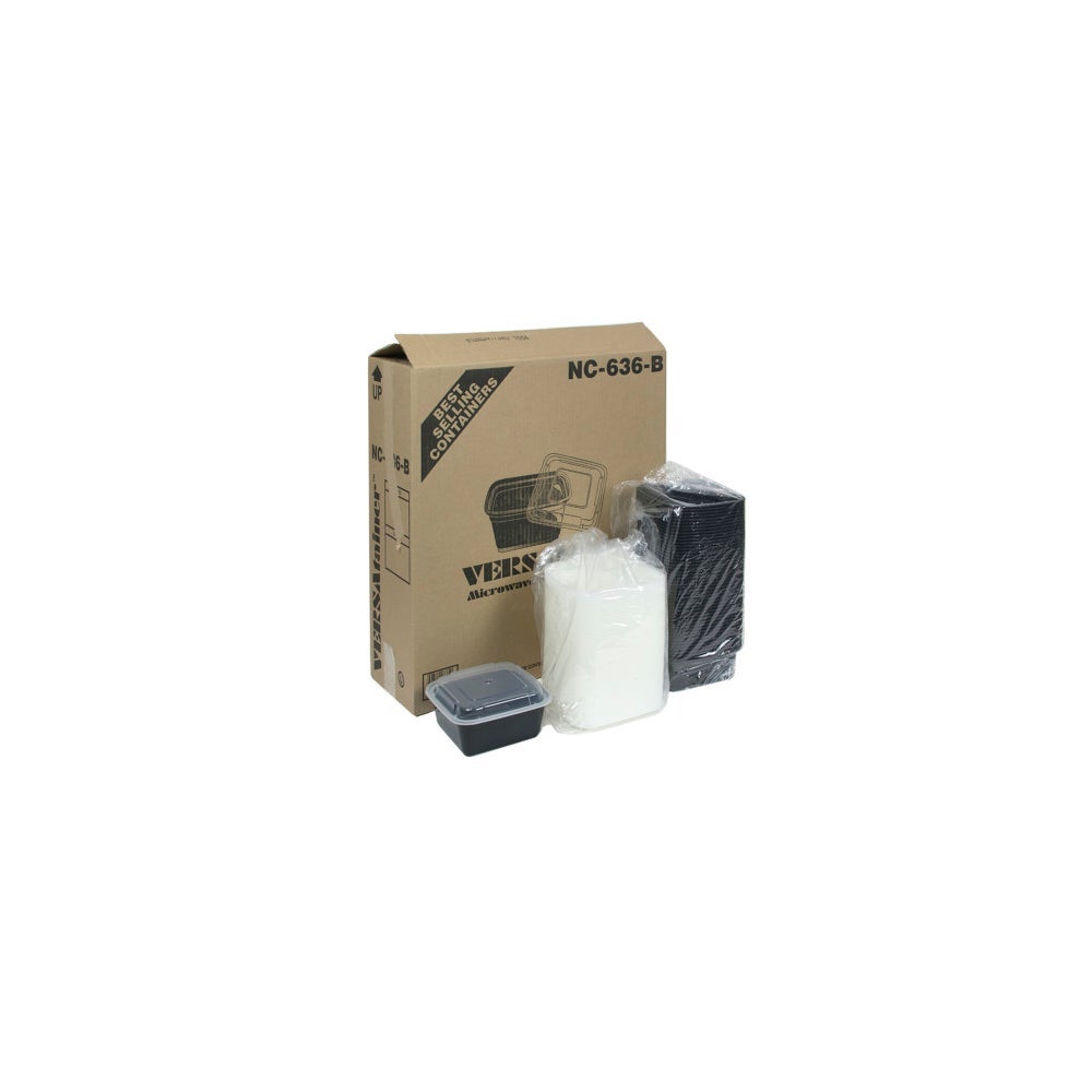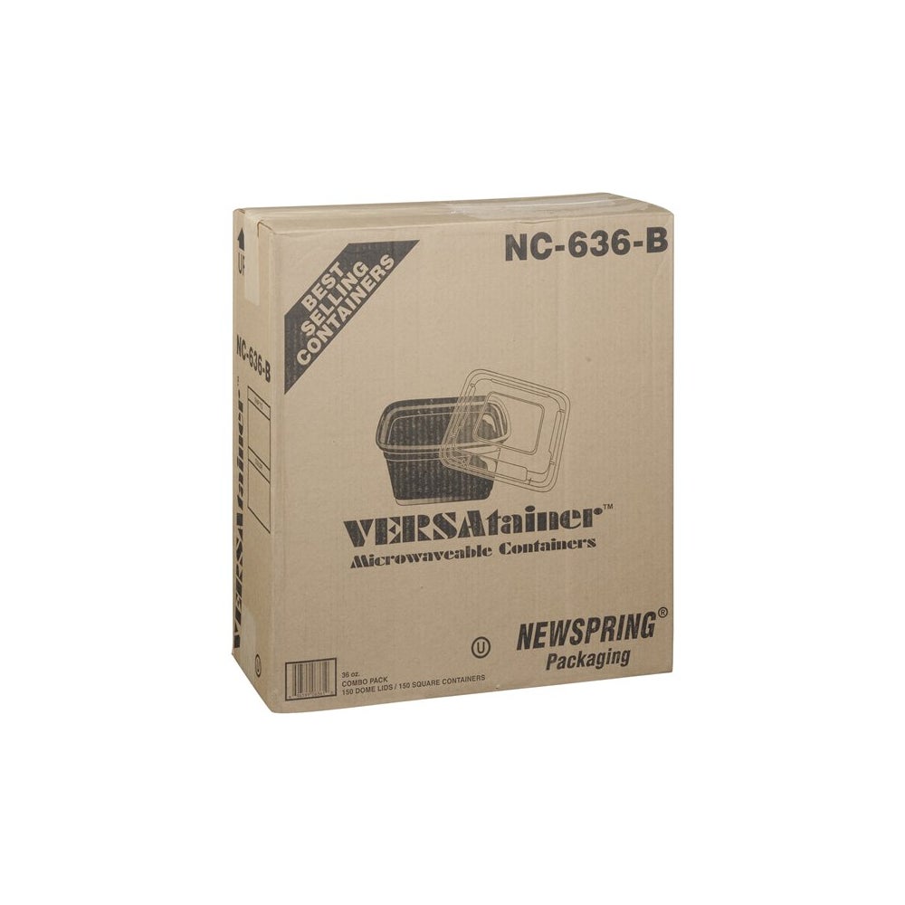 Newspring 36 Ounce 6.75 x 6.75 x 2.63 Inch Microwaveable Plastic Containers, Black, with Lids, Polypropylene, 150/Case
