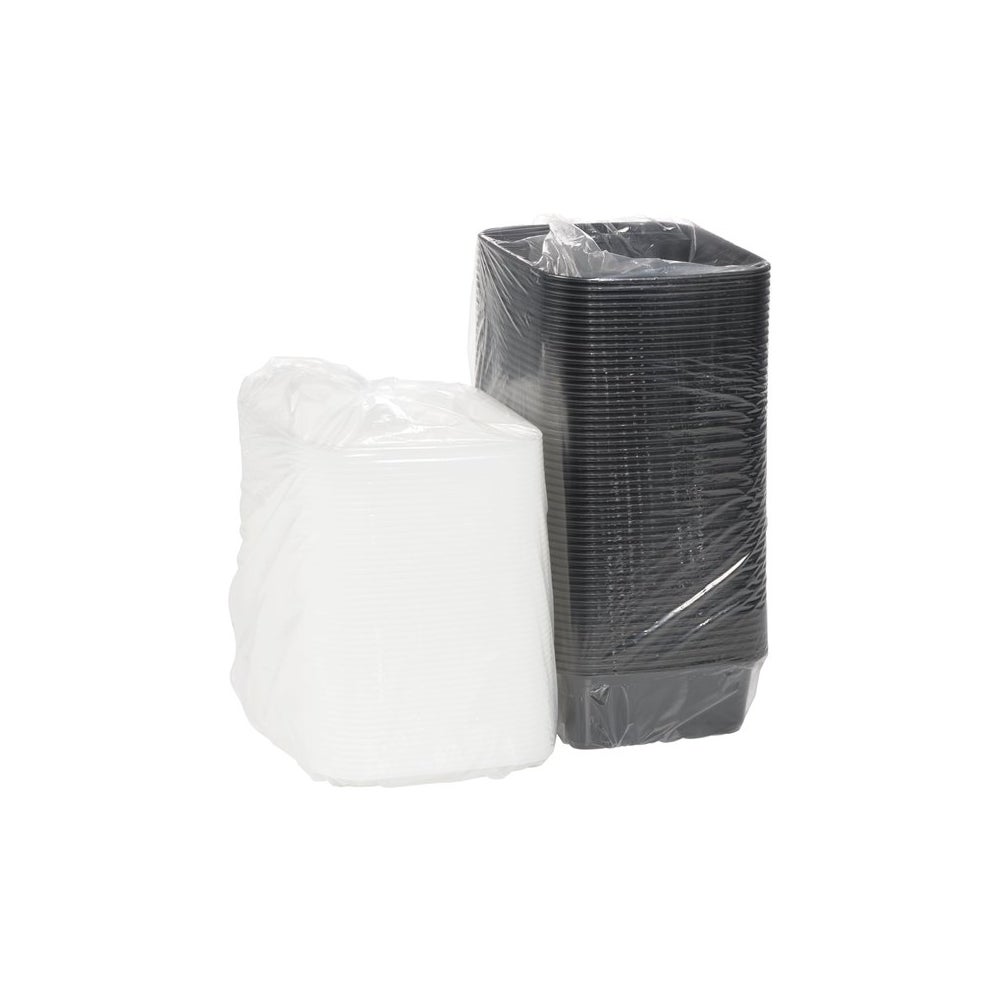 A contemporary design lends to these high-performance containers and lids, ideal for any takeout application. They are microwave- and dishwasher-safe, making them convenient and simple to reuse.
