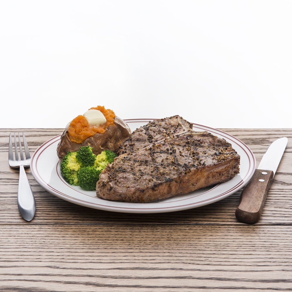 Derived from the full loin of the beef hindquarter, the short loin is home to some of the most desirable cuts of beef. It consists primarily of two muscles, the strip loin and the tenderloin separated by a telltale T-shaped bone. The short loin may be crafted into porterhouse, T-bone, strip, and tenderloin steaks.