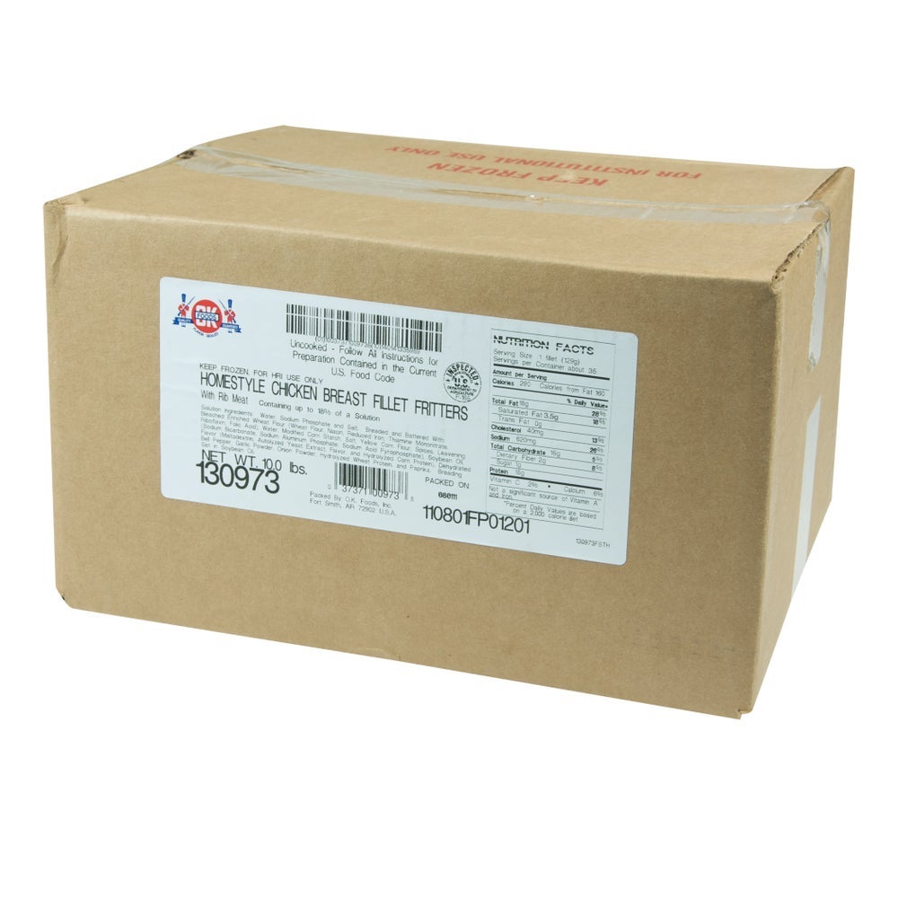 OK Foods Fritter Breaded Boneless Skinless Chicken Breast Fillets, 4 Ounce, Raw, Frozen, 5 Lb Bag, 2/Case