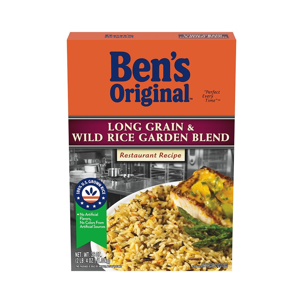 - Ben's Original brand Long Grain & Wild Rice Garden Blend is a combination of select long-grain wild rice, onions, carrots, celery, parsley, and seasonings.