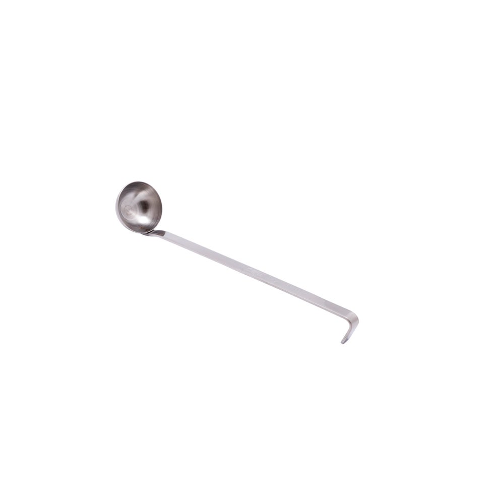 Made from heavy duty stainless steel, this ladle can hold one ounce, providing versatile usage.
