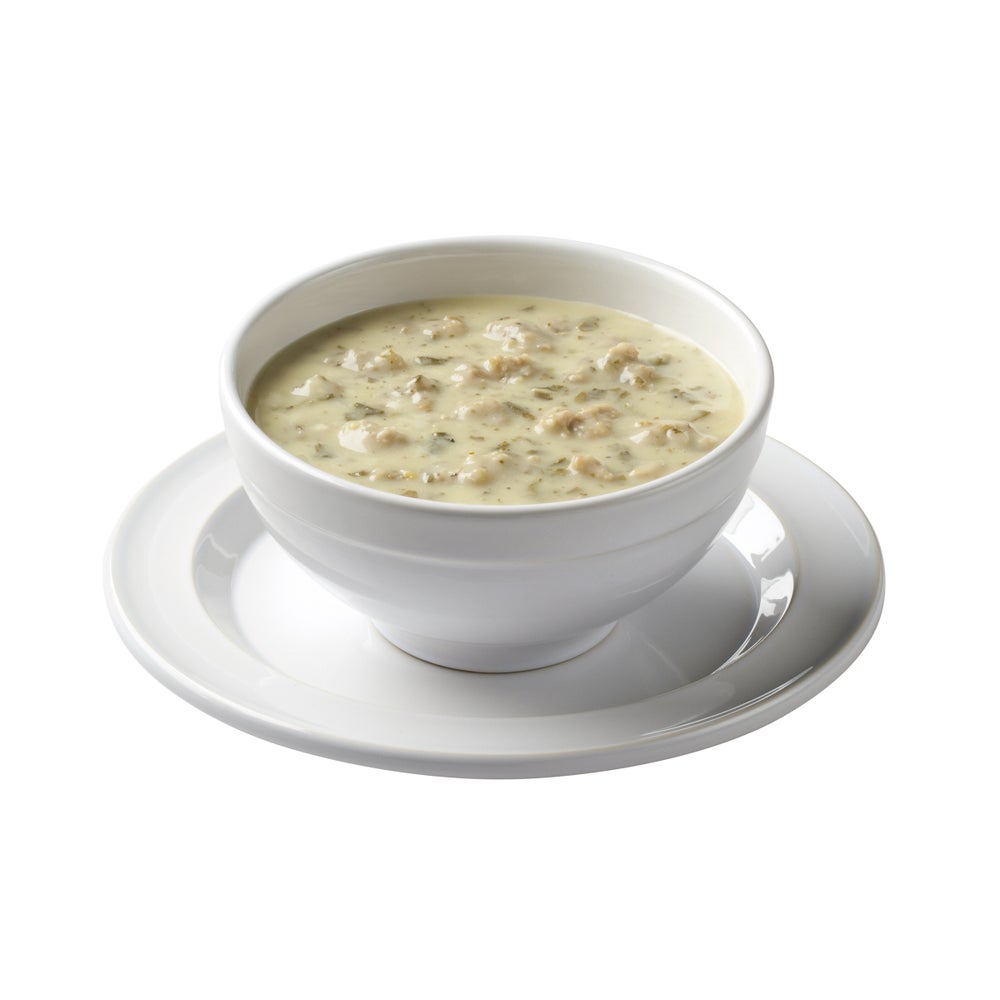 This Mediterranean-style soup offers a blend of sauteed onion, garlic, and seared Italian sausage in a rich white wine chicken broth, simmered with kale, herbs, and finished with a touch of fresh heavy cream and Parmesan cheese.