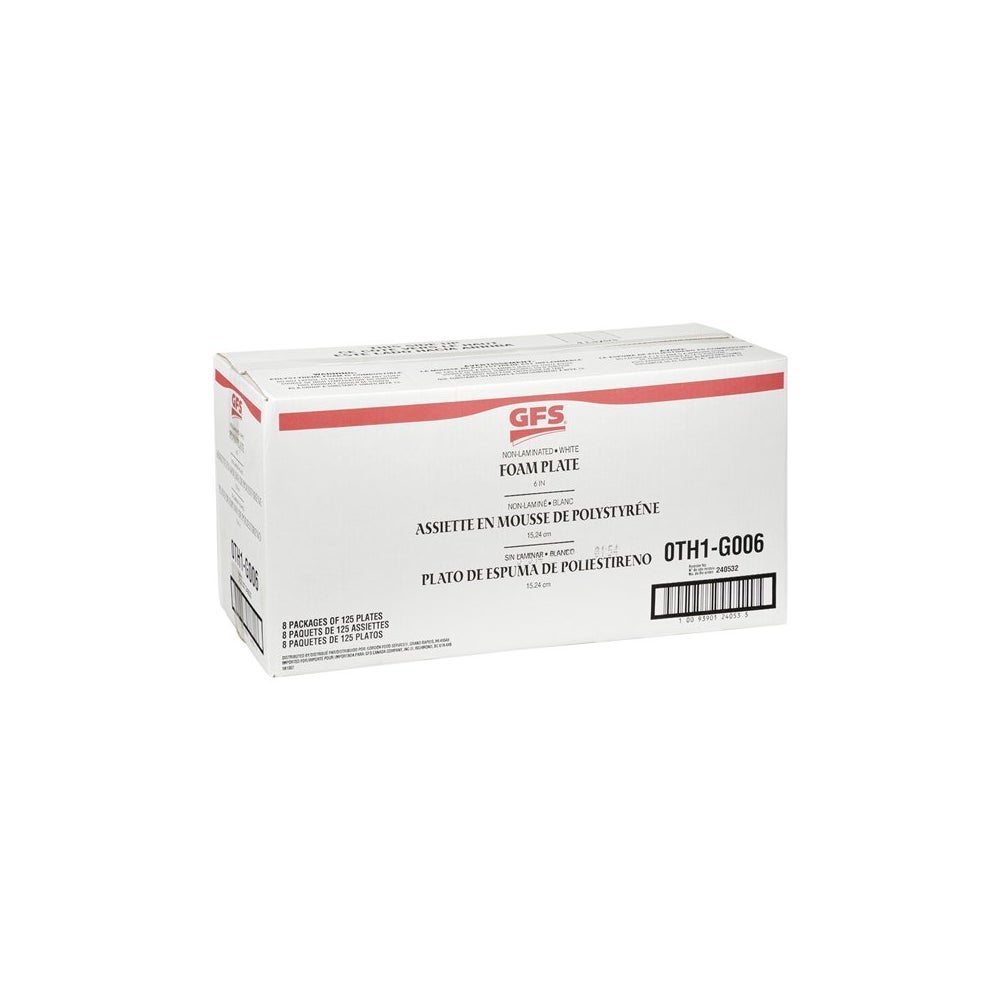 Gordon Choice 6 Inch Unlaminated Foam Plates, White, Polystyrene, 125 Ct Package, 8/Case