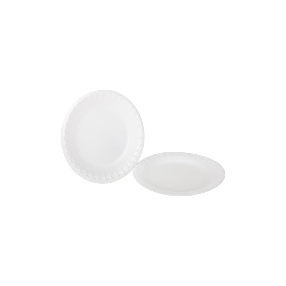 - These sturdy, durable, unlaminated white foam plates feature a satin design with sleek, clean lines.