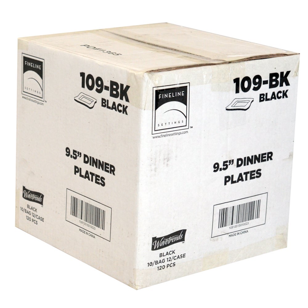 Wavetrends 9.5 Inch Plastic Plates, Black, Square, Polystyrene, 10 Ct Package, 12/Case