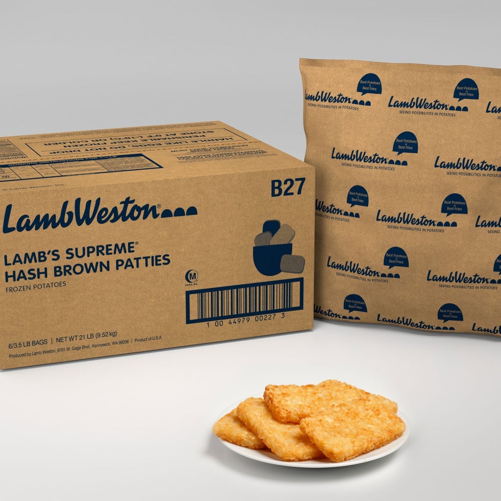 Lamb's Supreme Patty Hash Browns, Seasoned, IQF, 3.5 Lb Package, 6/Case