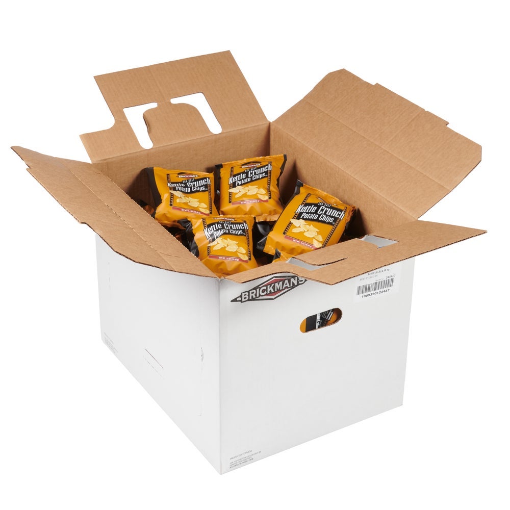 Complete your premium sandwich experience with the delicious taste of Brickman's thick-sliced Kettle Crunch Potato Chips. Perfect when paired with premium sandwiches and gourmet burgers, these chips deliver a rich potato taste with an irresistible crunch. Available in bulk and single-serve pack sizes, with no trans fat, Kettle Crunch Potato Chips are the perfect complement to the perfect meal.
