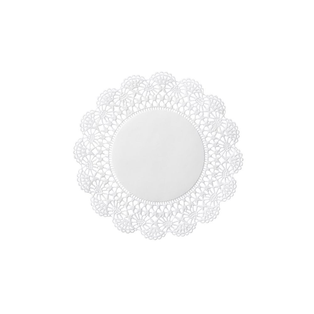 These doilies add a touch of elegance to a variety of table settings. The bright white design highlights a classic and versatile Cambridge lace pattern. Each doily is ideal for use as an underliner for desserts, soups or in displays.