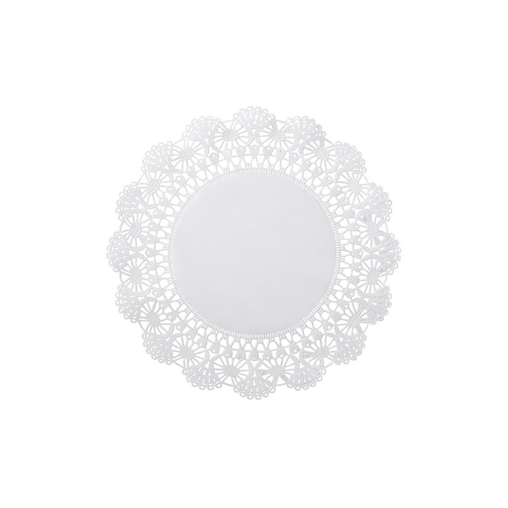 These doilies add a touch of elegance to a variety of table settings. The bright white design highlights a classic and versatile Cambridge lace pattern. Each doily is ideal for use as an underliner for desserts, soups or in displays.