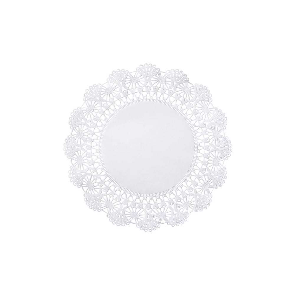 These doilies add a touch of elegance to a variety of table settings. The bright white design highlights a classic and versatile Cambridge lace pattern. Each doily is ideal for use as an underliner for desserts, soups or in displays.