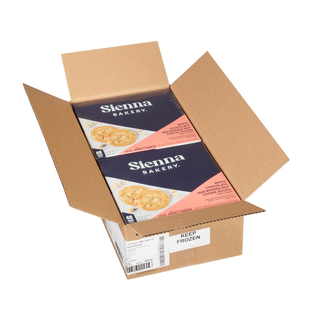 Sienna Bakery White Chocolate Chip Macadamia Nut Cookie Dough, Frozen, 2.25 Ounce, 48 Ct Box, 4/Case
