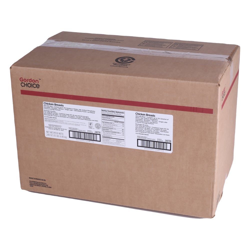 Gordon Choice Boneless Skinless Chicken Breast Fillets, Marinated, with Rib Meat, 5 Ounce, Raw, Individually Frozen Ice Glazed, 5 Lb Bag, 3/Case