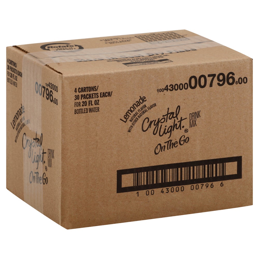 Crystal Light Powdered Sugar-Free Lemonade Drink Mix, Single-Serve, Shelf-Stable, 30 Ct Box, 4/Case