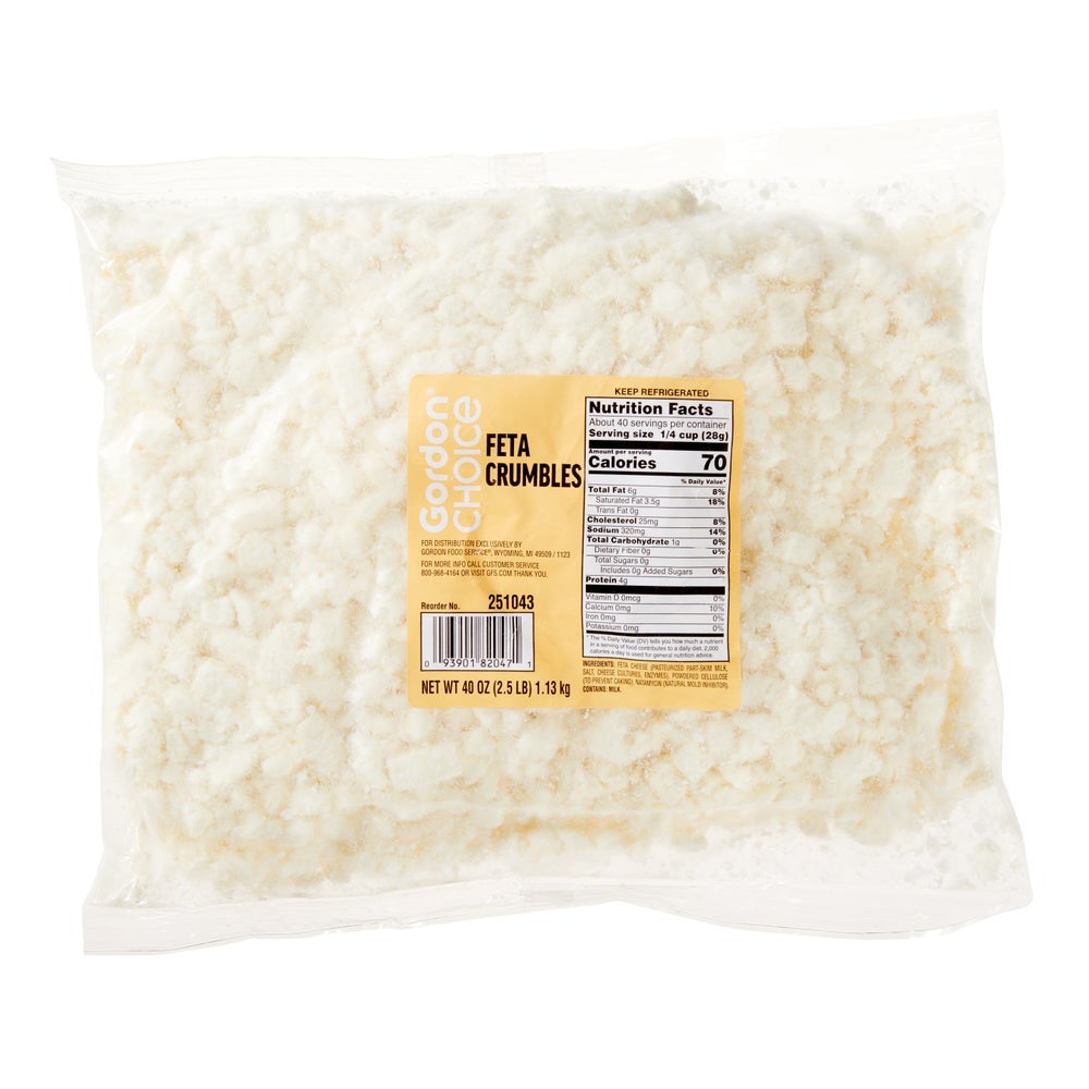 Gordon Choice Crumble Feta Cheese, Fresh, 2.5 Lb Bag, 4/Case