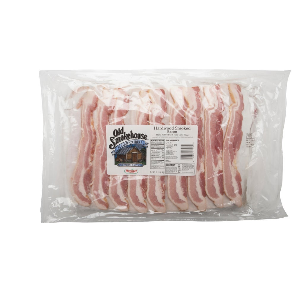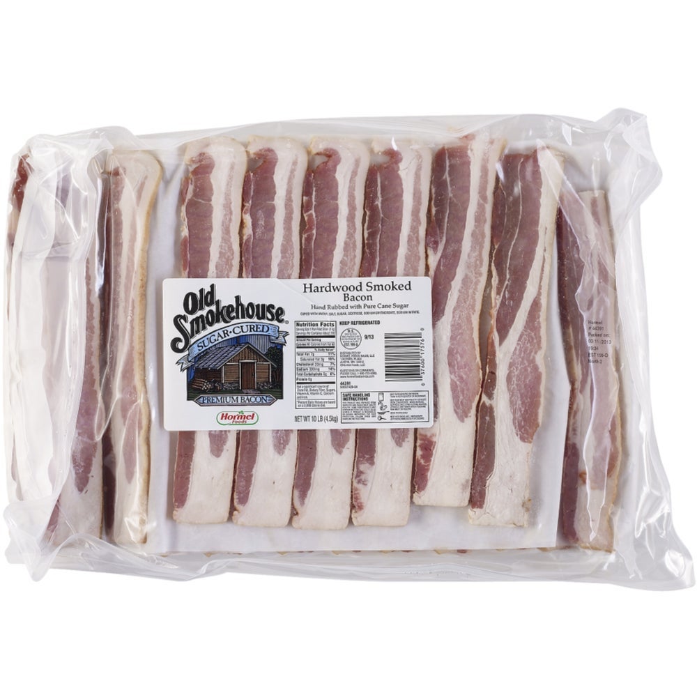 Old Smokehouse Hardwood-Smoked Laid-Out Bacon, 9-13 Slices Per Pound, Fresh, 10 Lb Package, 2/Case