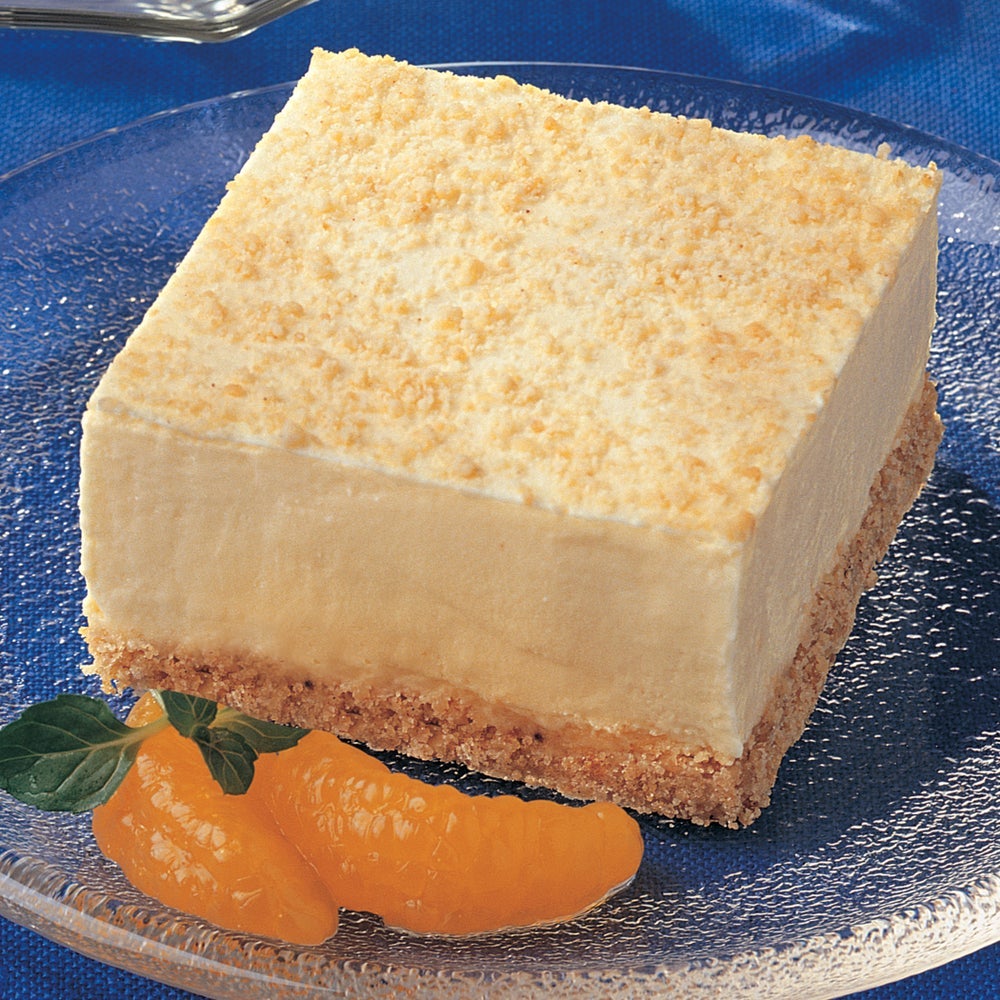These cheesecakes have a lighter, less dense texture than traditional New York-style cheesecakes. Cold-set cheesecakes have a hint of lemon and top an oatmeal crumb crust.
