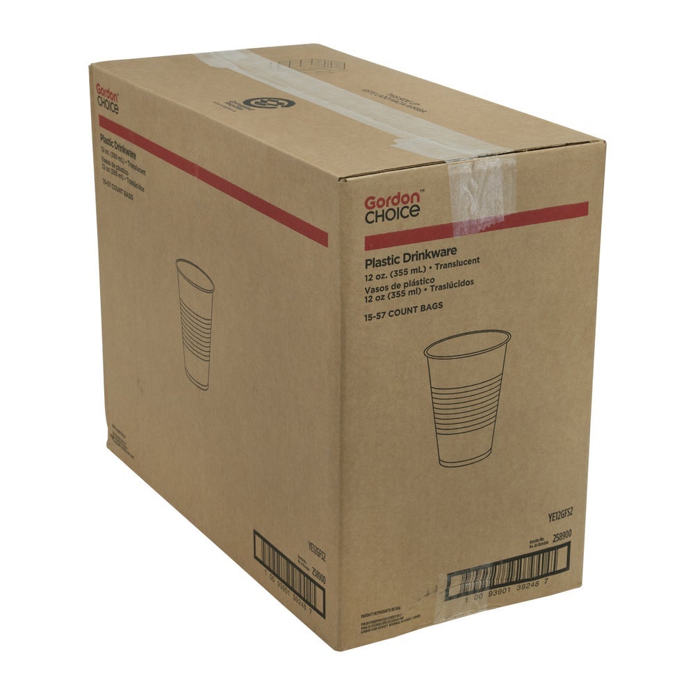 Gordon Choice 12 Ounce Plastic Cold Cups, Translucent, Polystyrene, 57 Ct Package, 15/Case
