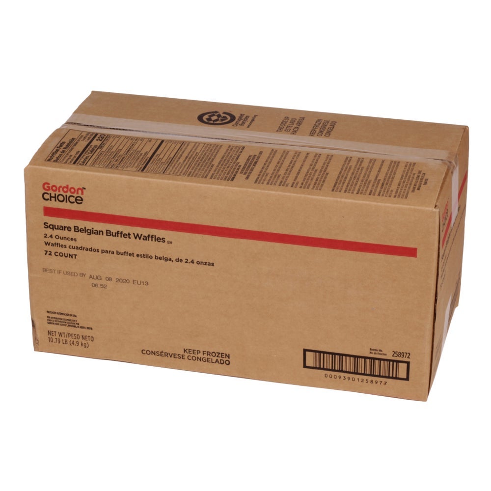 Gordon Choice Square Belgian Buffet Waffles, 4 Inch, Split, Frozen, 2.4 Ounce, 6 Ct Package, 12/Case