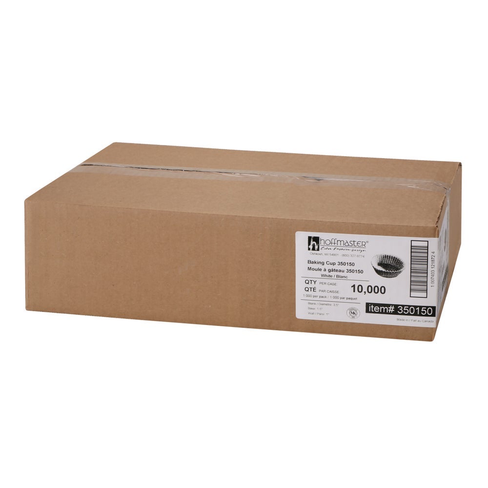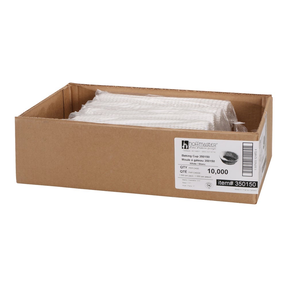 Hoffmaster 3.5 Inch Paper Baking Cups, White, Fluted, for Cupcakes, Desserts & Appetizers, 3.5 Linear Inch, 1000 Ct Package, 10/Case