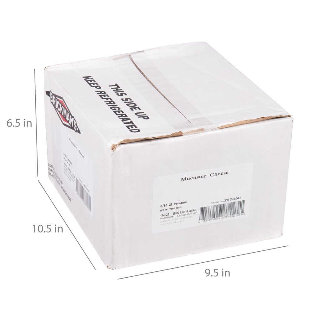Brickman's Muenster Cheese, Sliced, 32 Count, with Interleaf Paper, 0.75 Ounce, 1.5 Lb Package, 6/Case