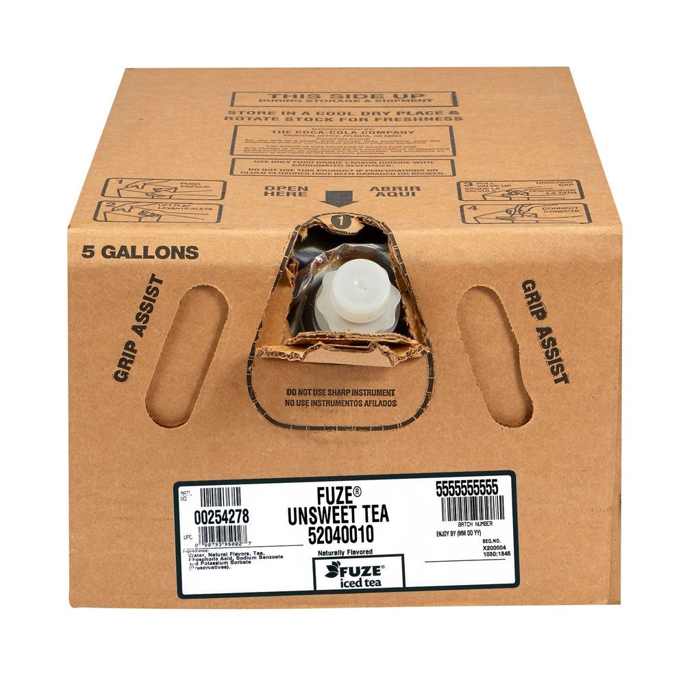 Fuze Unsweetened Iced Tea, 5 to 1 Ratio, Bag-in-Box, 5 Gal, 1/Case