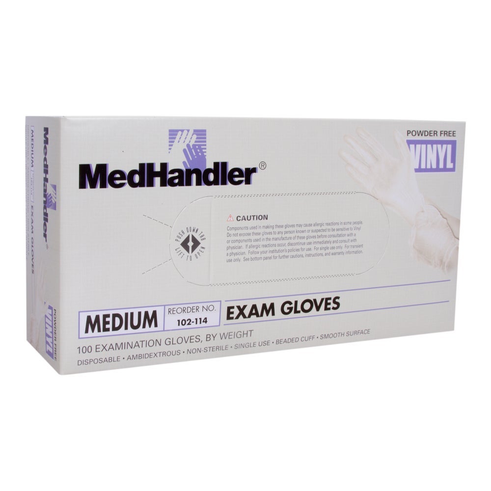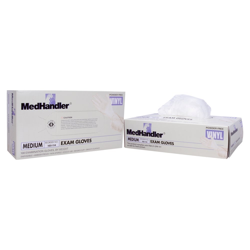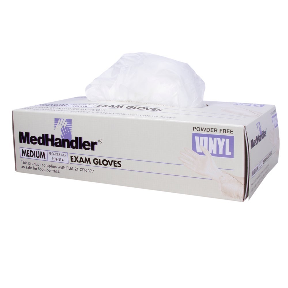 MedHandler Medium Powder-Free Vinyl Exam Gloves, Clear, 100 Ct Box, 10/Case