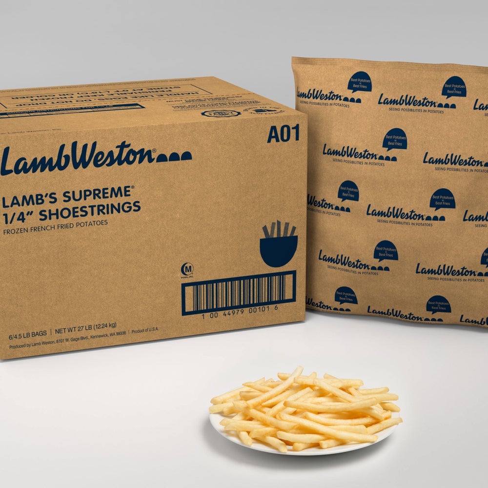 Lamb's Supreme 1/4 Inch Extra Long Fancy Shoestring Cut French Fries, Frozen, 4.5 Lb Package, 6/Case