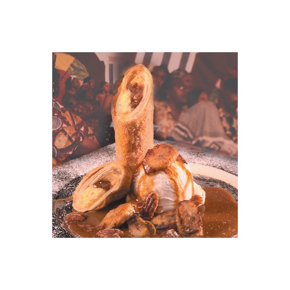 Rich and creamy, this cheesecake is layered with chunks of banana and real-butter caramel all rolled in a flaky tortilla pastry. Serve alone, or with ice cream and a dessert sauce for versatility.