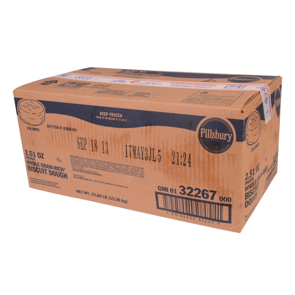 Pillsbury Whole Grain Biscuit Dough, Frozen, 2.51 Ounce, 216 Ct Bag, 1/Case