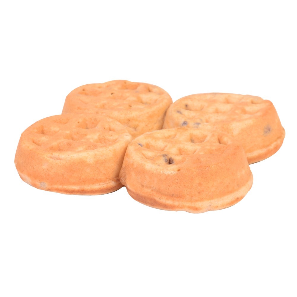 Whole grain-rich frozen mini waffles in individually wrapped ovenable packages. Blueberry flavor baked in for no-mess eating and 16 grams of whole grain per serving.