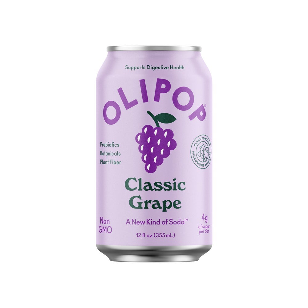 Olipop Grape Soft Drink, Single-Serve, Can, 12 Fl Oz Can, 12/Case