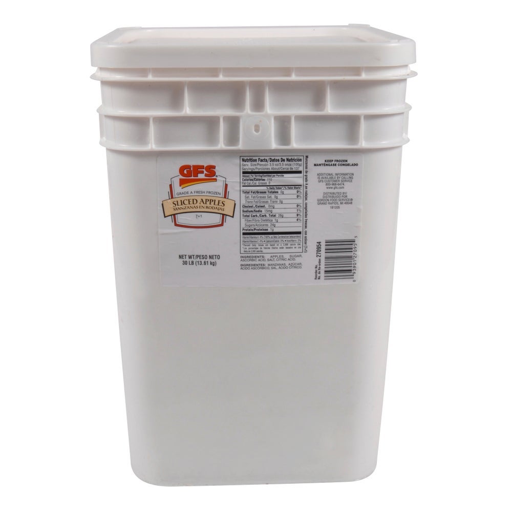 - Each case contains one, 30-pound bag of frozen, sliced apples.