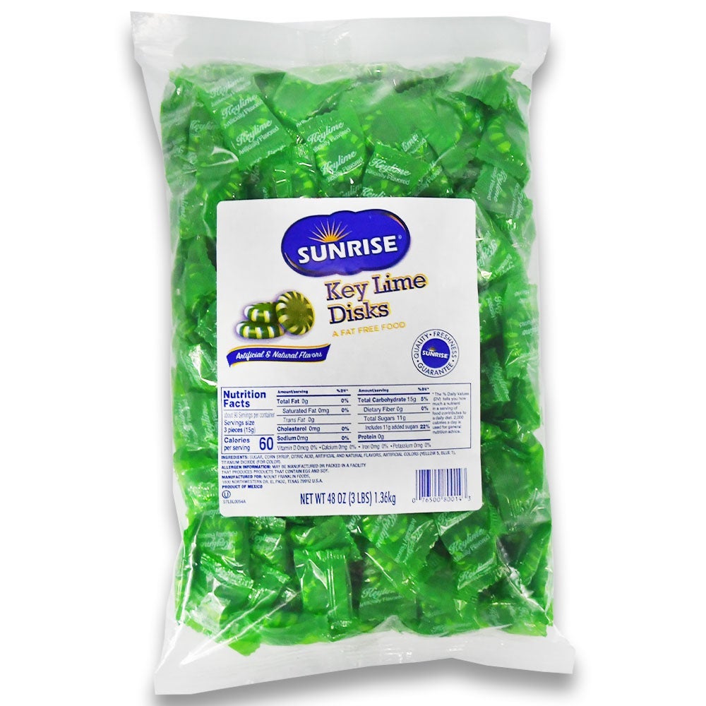 These green, hard candy discs have a smooth and creamy key lime flavor.