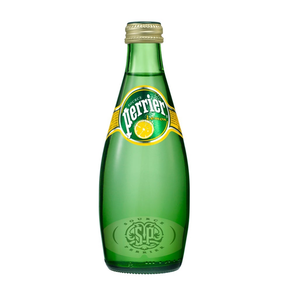 Perrier Lemon-Flavored Sparkling Mineral Water, Glass, 11 Fl Oz Each, 24/Case
