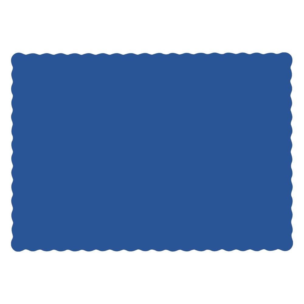 - These placemats provide a sanitary eating space while the scroll scalloped edges offer an upscale appearance. The strong color of these navy blue placemats provides an excellent contrast to light colored serviceware.
