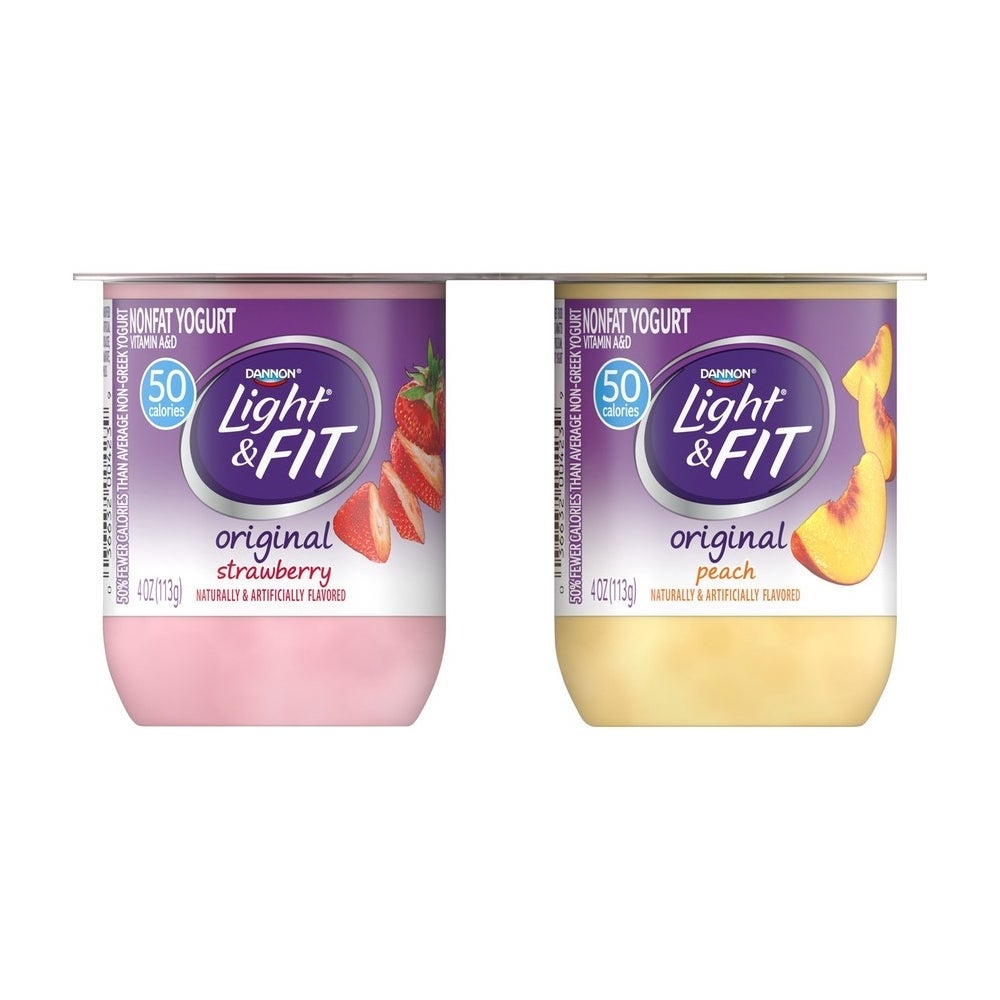 Dannon Light & Fit Nonfat Strawberry & Peach Yogurt, Cup, Variety Pack, 4 Oz Each, 24/Case