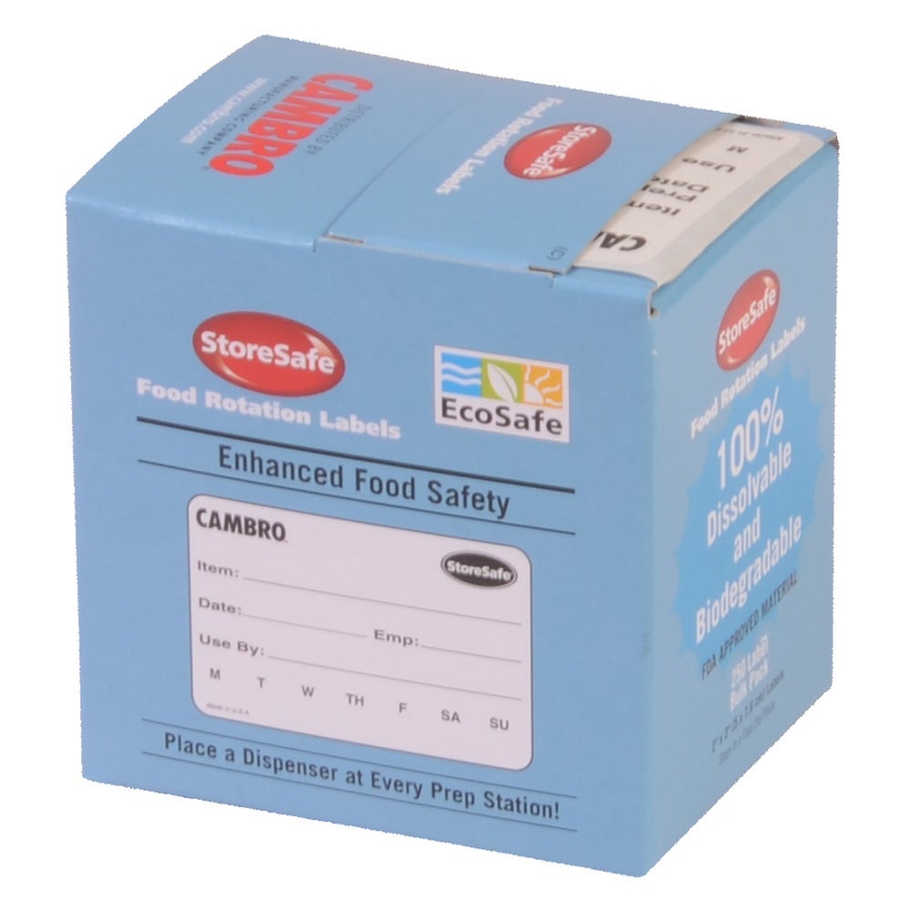 Cambro 2 x 3 Inch Dissolvable Food Storage Labels, White, 250 Ct Roll, 6/Case