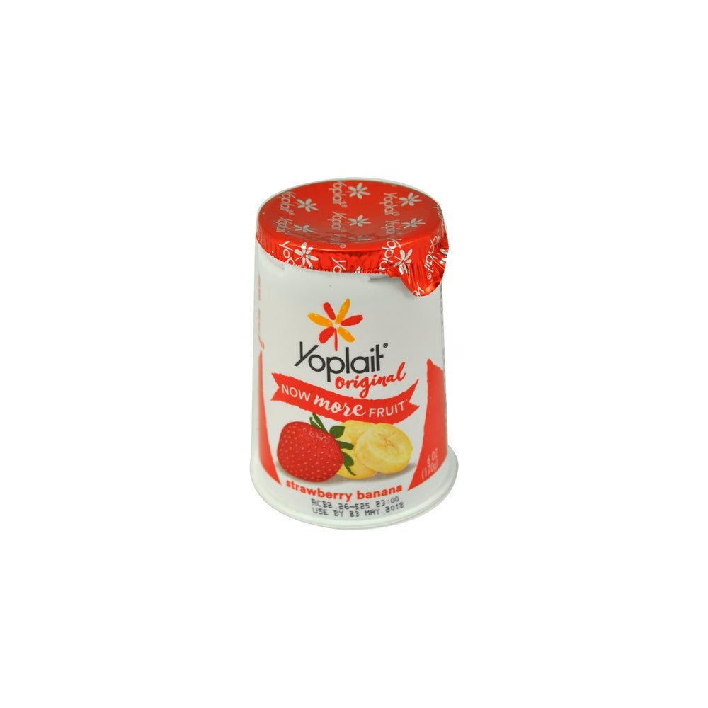 - All the nutrition and goodness of yogurt with the delicious blended creaminess of Yoplait - now with 10% more fruit! This strawberry banana gluten-free yogurt contains six grams of protein in a six ounce single serve cup.