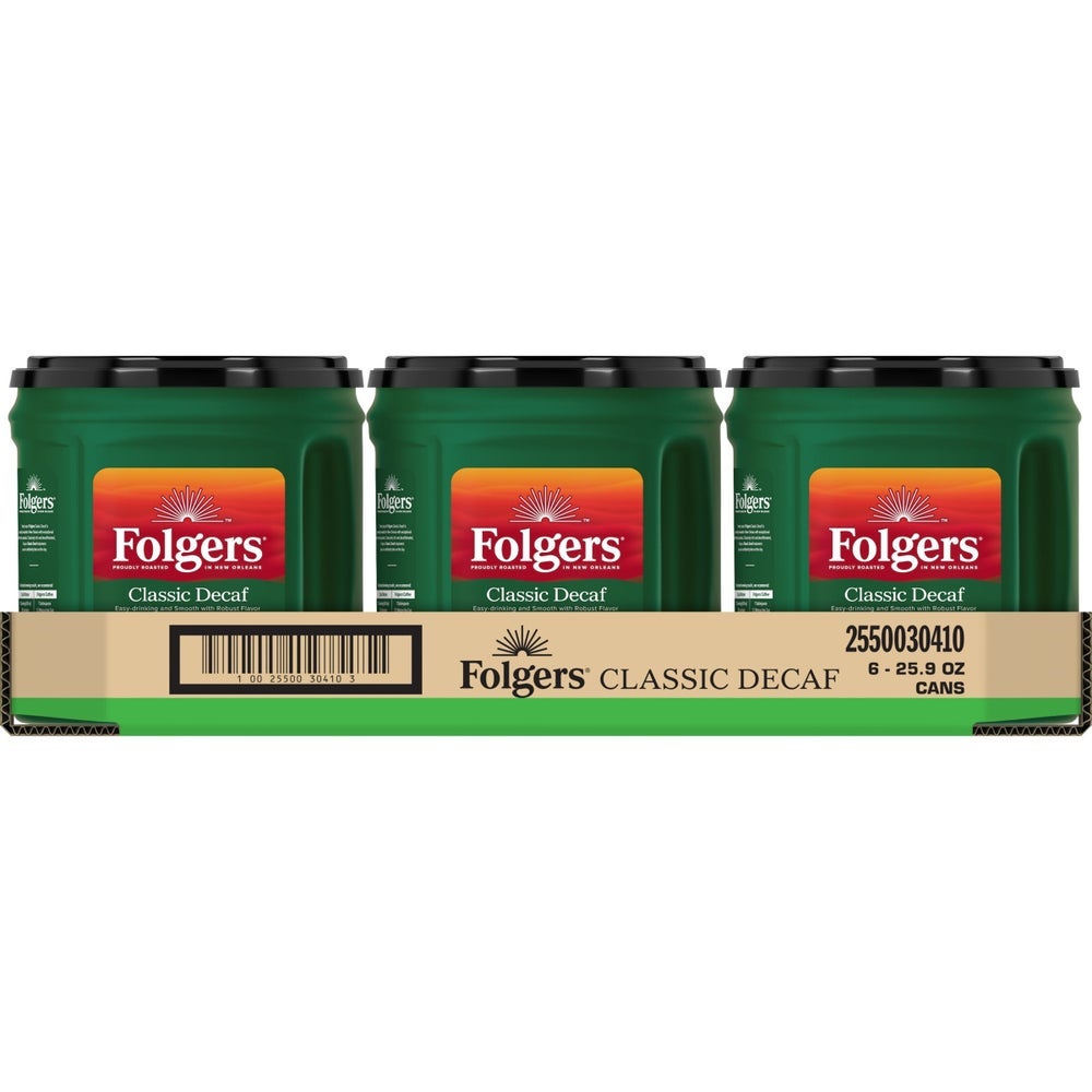 Folgers Classic Roast Ground Coffee, Decaffeinated, 25.9 Oz Can, 6/Case
