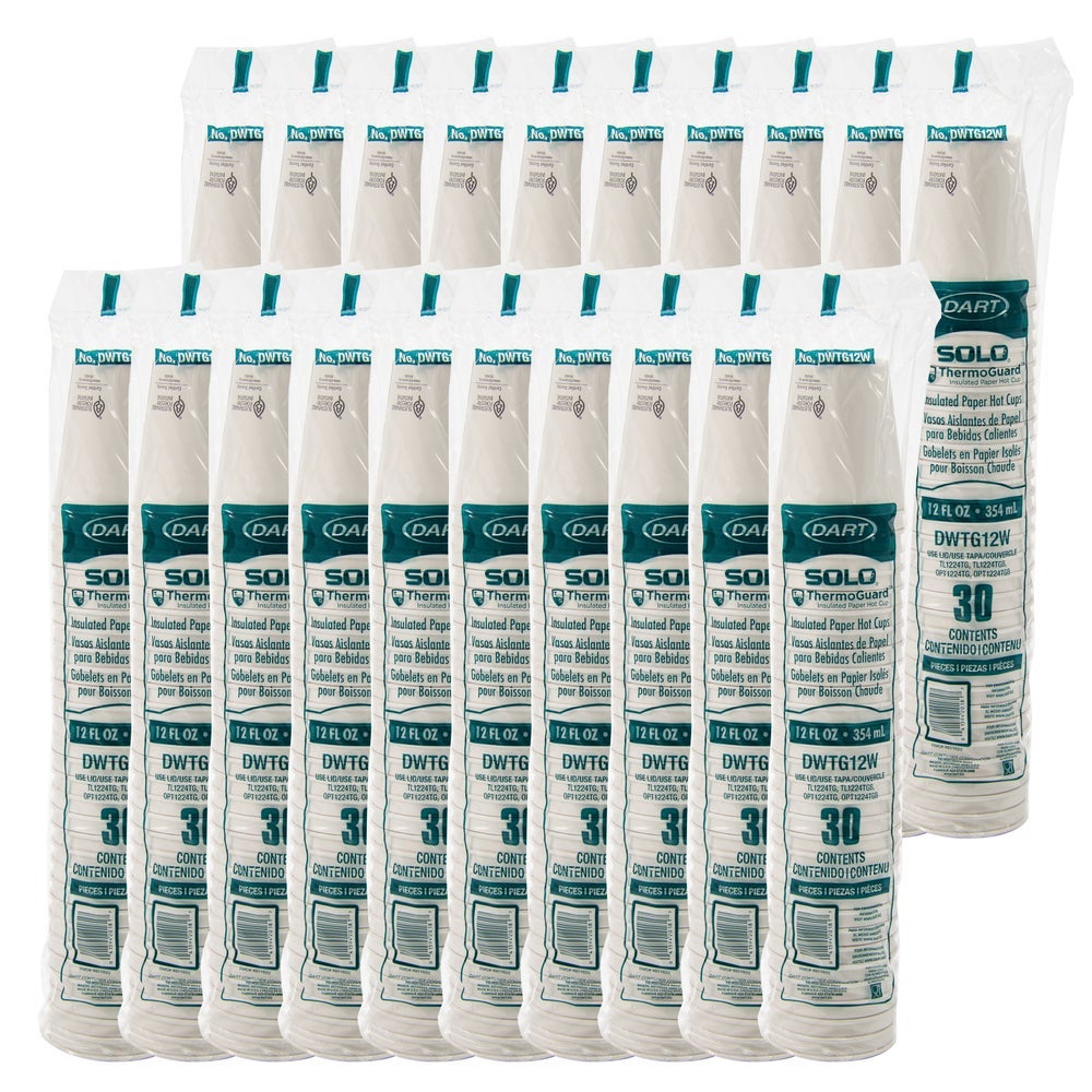 Dart ThermoGuard 12 Ounce Paper Hot Cups, White, Insulated, 12 Ounce, 30 Ct Package, 20/Case