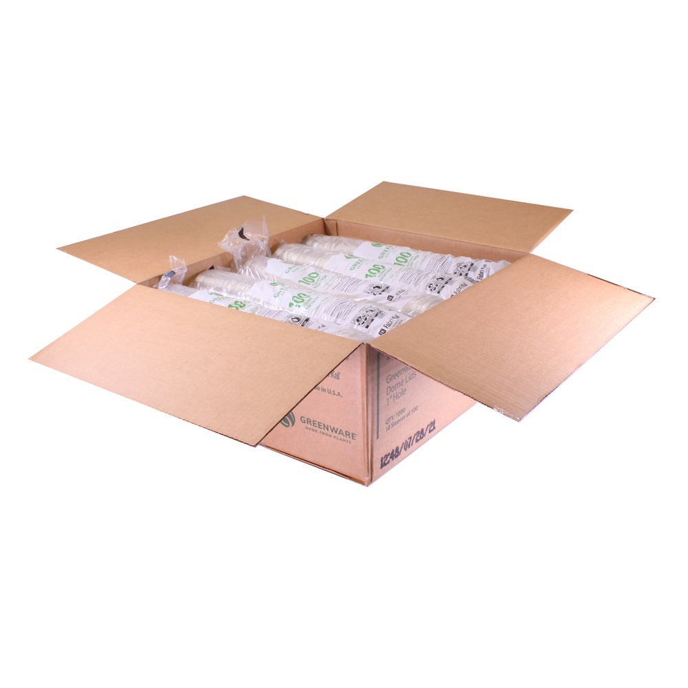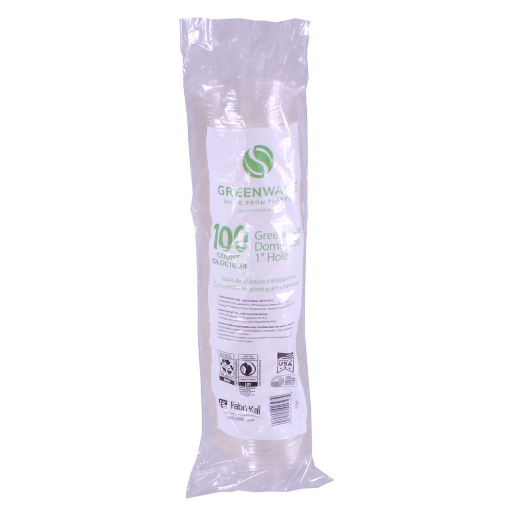 Greenware Center-Hole Plastic Dome Lids, Compostable, Clear, PLA, 100 Ct Package, 10/Case