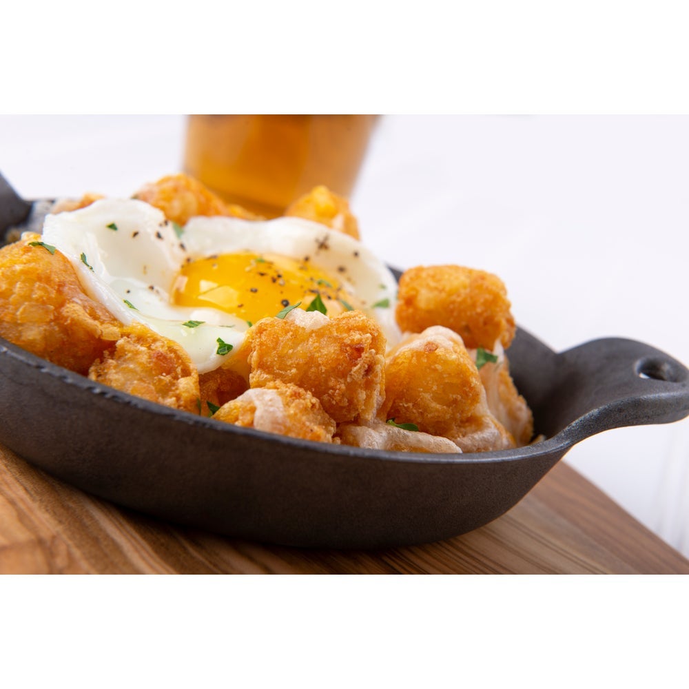 • Serve potato rounds with subs, pizza or hot dogs. Top them with nacho toppings and offer unique and indulgent "totchos" as an alternative appetizer to nachos.